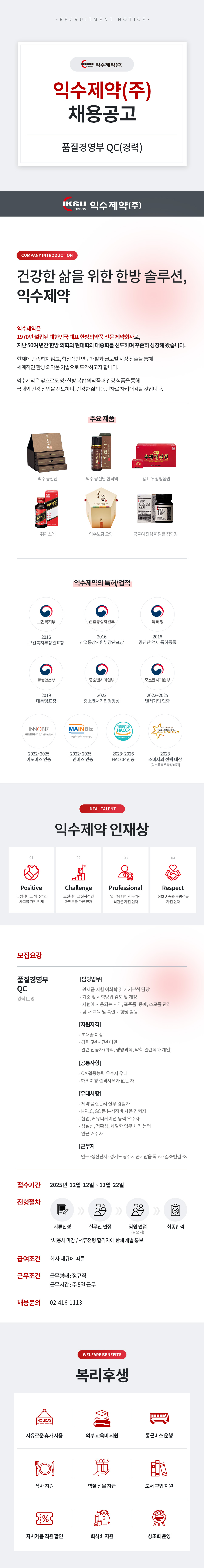 익수제약(주) 품질경영부 QC 경력사원 채용공고