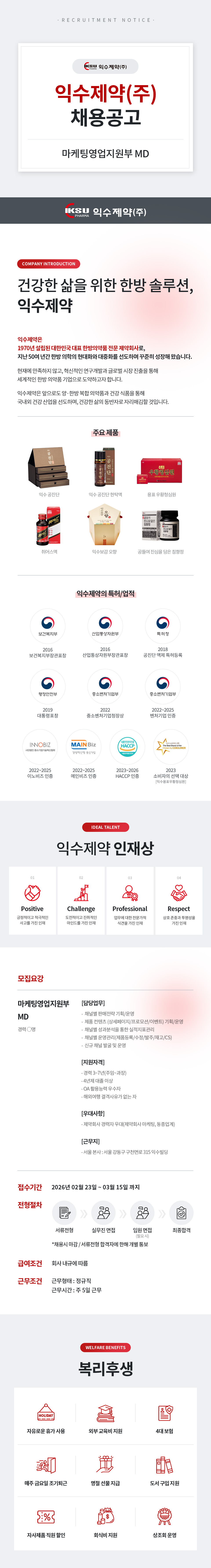 익수제약(주) 마케팅영업지원부 MD 경력사원 채용공고